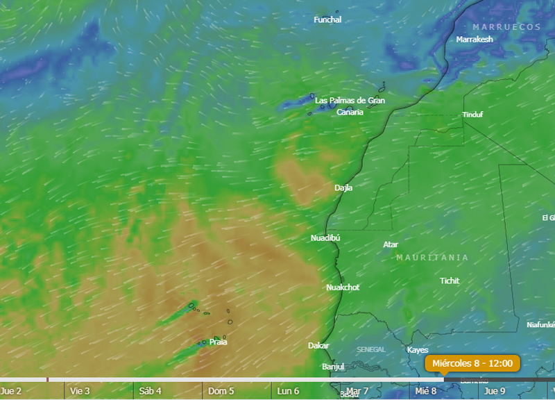 A cinco días de la partida parece que las condiciones meteorológicas para cubrir este primer trayecto del salto atlántico, son óptimas para alcanzar con rapidez y con rumbo directo el archipiélago caboverteano.